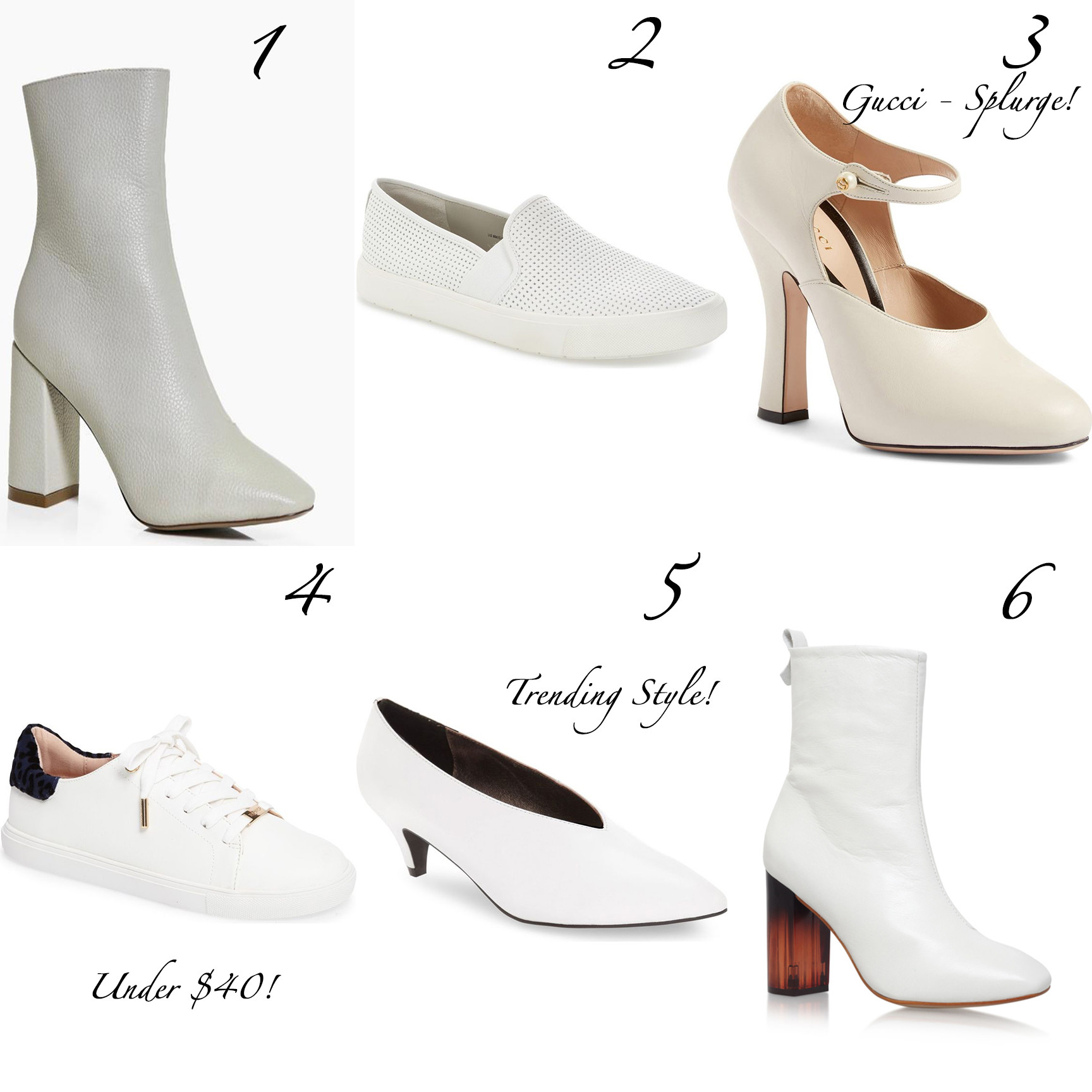 Nothing beats a trend that can be worn year-round, and after we rid ourselves of that old wives-tale about white, everything in that color is exactly that — seasonless. While hard to maintain at times, this color seriously adds energy to everything from heels, flats to boots. White shoes are making some serious appearances in the fashion circuit and it can certainly update any look, from athleisure to business attire! Here are some of my picks for every budget!
